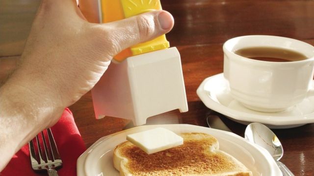 Zasada działania gadżetu jest prosta. Do środka urządzenia należy włożyć większy kawałek masła. Następnie wystarczy jedno kliknięcie, by na talerzu z gorącym tostem, mięsem lub warzywami wylądował płatek masła.