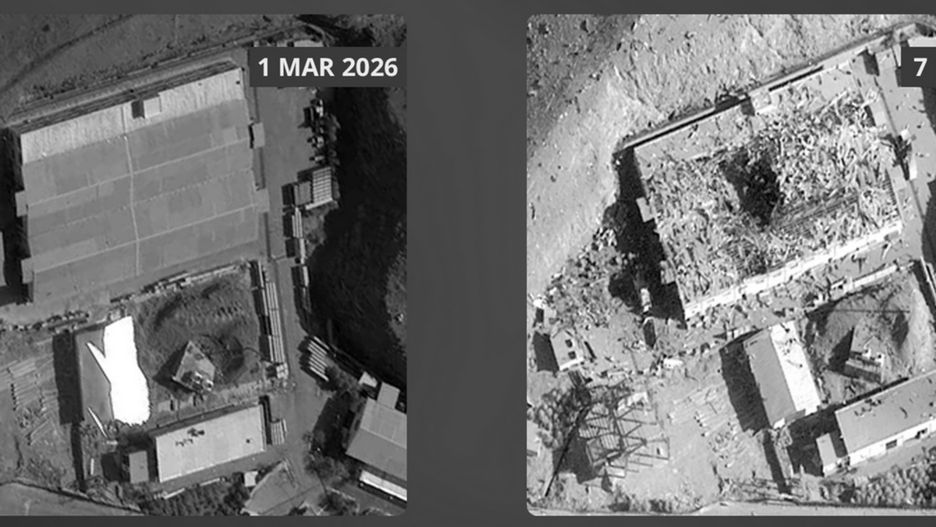 Wpisowi towarzyszyły materiały wizualne pokazujące stan zabudowań w dwóch terminach. CENTCOM wskazało na zdjęcia wykonane 1 marca 2026 r. oraz 7 marca 2026 r. i opisało, jak zmienił się wygląd kompleksu.