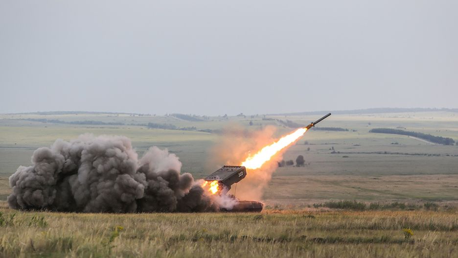 Widoczny na nagraniu TOS-1A to rosyjski system artylerii rakietowej, którego historia sięga lat 80. ubiegłego wieku. Rosjanie potrzebowali wówczas broni, która jest zdolna do atakowania dużego terytorium przeciwnika przy użyciu szybkiej salwy. Tak powstał TOS-1 na podwoziu czołgu T-72. Umieszczono na nim 30-prowadnicową (TOS-1A) lub 24-prowadnicową wyrzutnię (TOS-1A) pocisków termobarycznych.