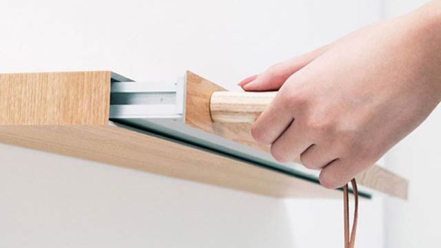 Półka "Clopen" pokryta okleiną zaprojektowana przez Japończyków z Torafu Architects przypomina zwykłą podstawkę pod bibeloty. Trudno się domyślić, że ma w środku schowek! Aby wysunąć schowaną w środku aluminiową szufladę, należy wiedzieć, w którym miejscu przyłożyć klucze, a właściwie uchwyty z magnesami.