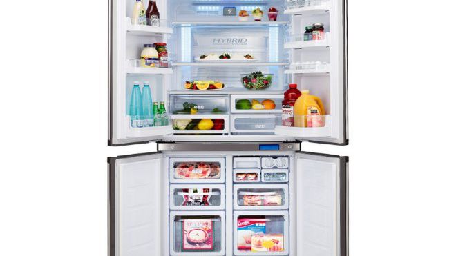 Czterodrzwiowa, ogromna chłodziarko-zamrażarka Sharp