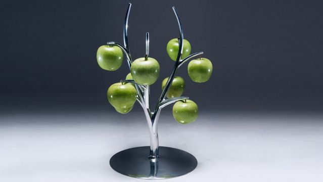 Australijczyk Simon Colabufalo nazwał wieszak swojego projektu Eva. Zaprezentowany na wystawie DesignEX 2012 w Sydney prototyp gadżetu kuchennego wykonano z polerowanego aluminium. Wieszak „_ zabiera owoce z powrotem na drzewo _”, ale przeznaczono go przede wszystkim na owoce z łodyżką. Zatem aby wybrać sztuki dość mocne, by świetnie prezentowały się na takim drzewku, trzeba będzie spędzić kilka chwil na stoisku z owocami.