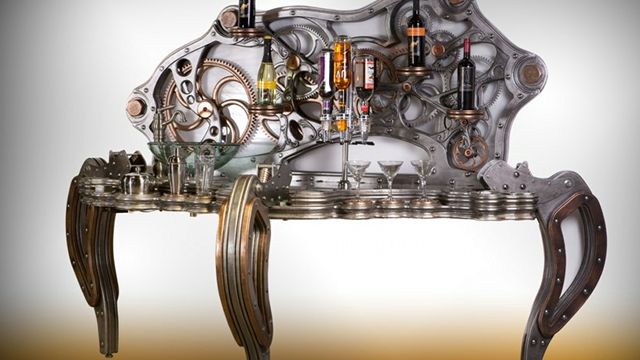 Kalifornijczyk Dale Mathis czerpie inspirację z dzieł H.G. Wellsa, Julesa Verne'a i Salvadora Dali, więc nic dziwnego, że wykonany przez niego mechaniczny bar łączy fantastykę i surrealizm.