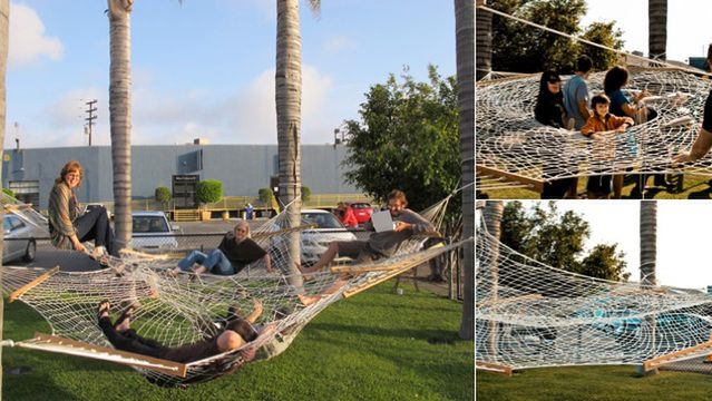 Marudy zwrócą uwagę na fakt, że trudno o odpowiednią liczbę drzew położonych w niewielkiej odległości, by móc zawiesić hamak. Nie mówiąc o tym, co się stanie, gdy jeden dowcipniś postanowi całą siatkę rozbujać. Cóż, wiadomo, że nie wszystkie zabawne pomysły okazują się praktyczne. Ale pomarzyć można: