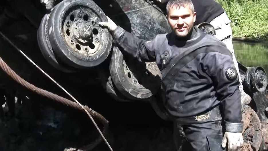 - Największą trudnością była przelewająca się woda. Cała operacja była prowadzona pod nią, nie osuszaliśmy terenu przed wydobyciem. Osobiście nurkowałem i próbowałem zaczepić haki. Wreszcie udało się i mogliśmy przystąpić do wyciągania - opowiada Deling.