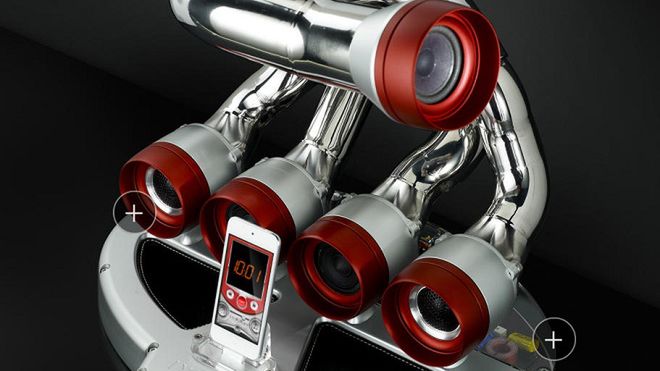 Dwóch projektantów z włoskiej Modeny, Mateo Panini oraz Micro Pecorari postanowiło udowodnić, że elementy silnika mogą mieć zastosowanie w domowym zaciszu. Niepowtarzalne stacje dokujące wykonywane są z bloku aluminium i oprócz głośników szerokopamsowych, posiadają również subwoofer zajmujący się odtwarzaniem niskich tonów.