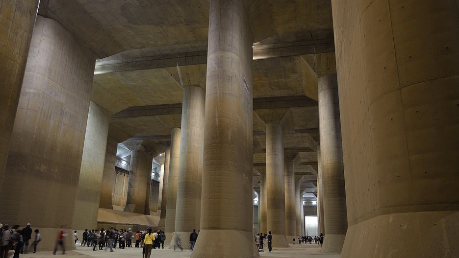 Prowadzą one do głównego zbiornika – gigantycznej, nazywanej "świątynią", podziemnej komory długiej na 177 metrów, szerokiej na 78 i wysokiej na 25 metrów. To właśnie z niej system pomp wyrzuca wodę w bezpiecznym dla aglomeracji miejscu.