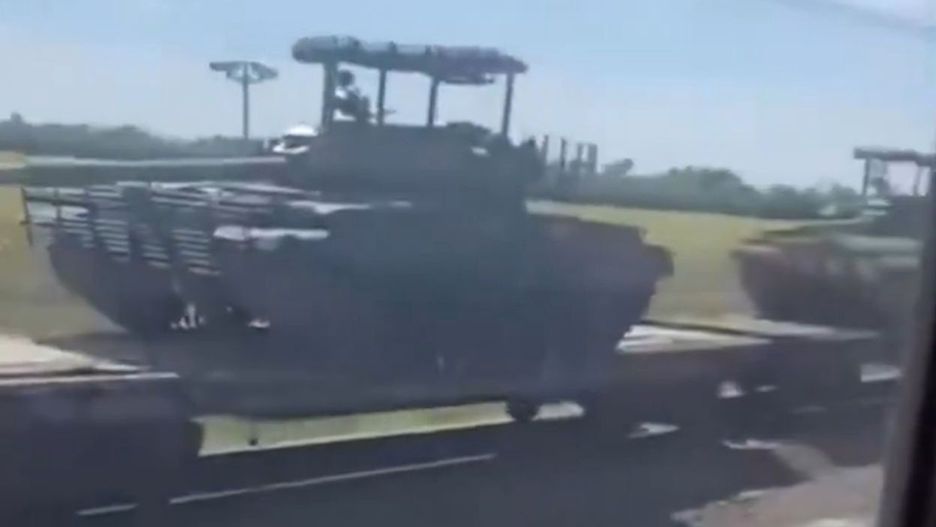 Na nagraniu, które zostało zarejestrowane najprawdopodobniej przez Rosjan zamieszkujących tereny nieopodal trasy kolejowej wykorzystywanej przez armię, można zauważyć, że czołgi zostały doposażone w charakterystyczne daszki.