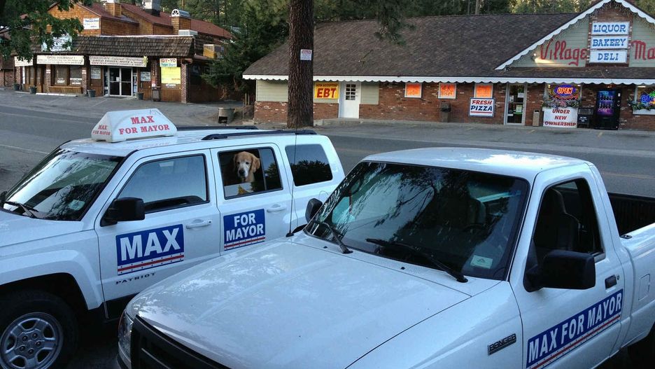 Max jest trzecim psim burmistrzem sprawującym urząd. Pierwszy psi burmistrz wybrany został w 2012 r., kiedy to organizacja Idyllwild Animal Rescue Friends wpadła na oryginalny pomysł zbiórki funduszy. Fundacja zorganizowała wybory burmistrza, w których to nie mogli kandydować ludzie.