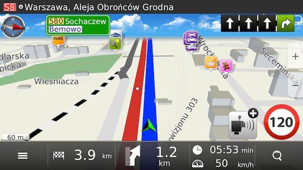 - obszerną bazę POI oraz strefy płatnego parkowania;