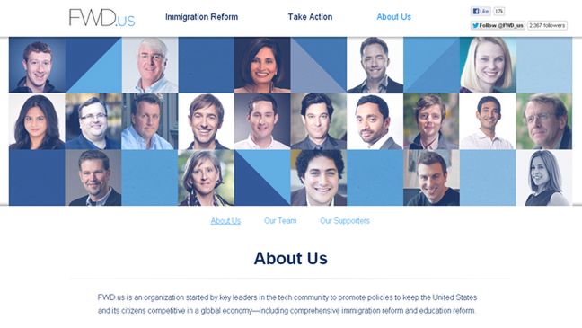 Wśród przedstawicieli Doliny Krzemowej, wnoszących wkład w Fwd.us, bądź deklarujących poparcie dla tego ugrupowania są szefowie wielkich i znanych firm, takich jak Google, Yahoo, SpaceX, Tesla Motors, Zynga, czy LinkedIn.