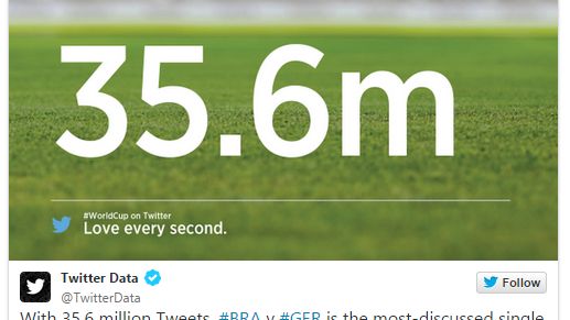 Tegoroczny mundial pomógł Twitterowi w pobiciu swojego własnego rekodu. Znowu. Pełny dramatyzmu mecz Niemcy kontra Brazylia zanotował 35,6 miliona wpisów (tweetów) na Twitterze.