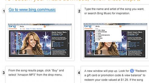 W ramach noworocznej akcji "Bing Holiday Song Giveaway", Microsoft udostępnił bagatela pół miliona utworów muzycznych. Z promocji mogą skorzystać zarówno nowi użytkownicy Bing, jak i ci którzy korzystali już wcześniej z wyszukiwarki Microsoftu. Aby otrzymać możliwość pobierania muzyki za darmo, wystarczy zarejestrować swój email w bazie Microsoftu (jest to jednoznaczne z wyrażeniem zgody na otrzymywanie newsletter’a Bing). Na wskazany adres w odpowiedzi od Microsoftu otrzymamy osobisty kod, uprawniający do pobrania wybranych piosenek ze sklepu Amazon.com oraz niezbędne instrukcje jak tego dokonać.