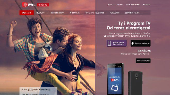 Mając mobilną WP.PL w swoim smartfonie, nie trzeba rozstawać się ze sztandarowymi serwisami Wirtualnej Polski: Wiadomościami, Sportem, Programem TV czy Pocztą. Dzięki temu, że WP.PL jest mobilna, „Ty i ona jesteście... nierozłączni”.