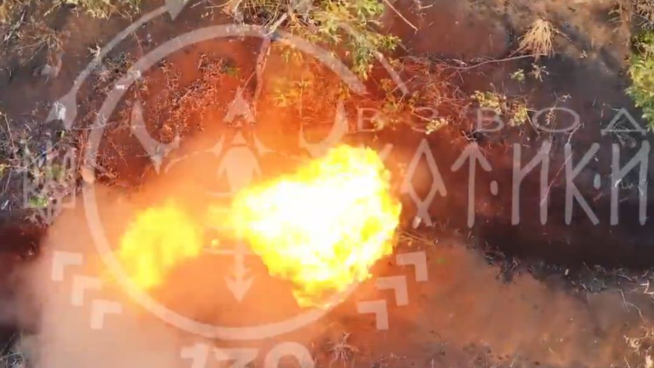 Poza wykorzystaniem smoczych dronów zrzucających na zadany obszar termit, wykorzystywane są też bomblety z napalmem jak na poniższym nagraniu, gdzie widać zrzut na rosyjski okop.