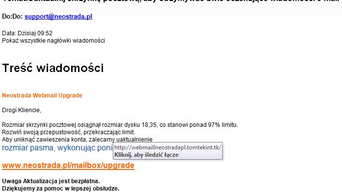 Wystarczy kliknąć w link, niby prowadzący do strony neostrada.pl. To sprytny zabieg przestępców.
