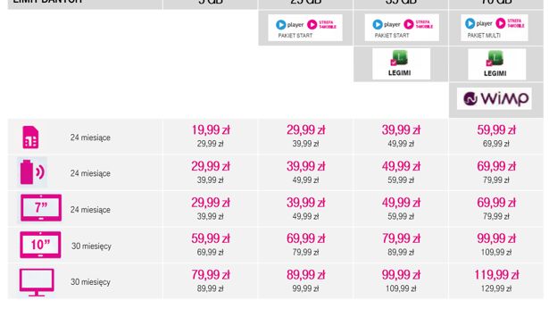 Od 30. Marca T-Mobile wprowadza nową ofertę Internetu mobilnego 4G LTE dedykowaną klientom prywatnym. Propozycja bazuje na czterech prostych pakietach. Dodatkowo klienci będą mogli korzystać z dostępu do popularnych serwisów rozrywkowych - Strefy T-Mobile w Player.pl, oferty książek w Legimi oraz platformy muzycznej WiMP.