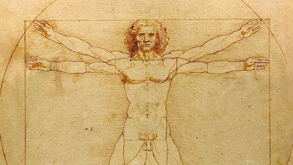 Leonardo da Vinci stworzył "Człowieka witruwiańskiego" w 1490 r., łącząc sztukę z nauką i matematyką. Szkic przedstawia wyidealizowanego mężczyznę stojącego w dwóch odsłonach: w jednej z nogami i ramionami tworzącymi literę T, dotykającego krawędzi wpisanego kwadratu, a w drugiej w kształcie gwiazdy, z rozłożonymi ramionami i nogami dotykającymi krawędzi wpisanego koła.