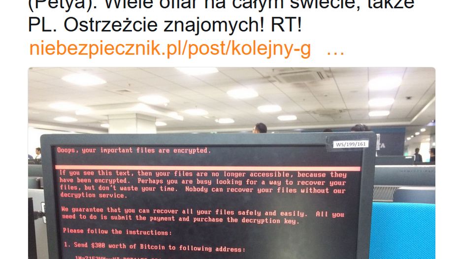 – Według naszej estymacji ofiarami padło kilkadziesiąt przedsiębiorstw w Polsce – mówi przedstawiciel portalu Niebezpiecznik. – Oczywiście to niedokładna liczba, bo nie każda firma przyzna się, że jej system został zablokowany przez hakerów. Jeśli chodzi o motywację atakujących, to mamy do czynienia z próbą wymuszenia okupu – pliki są tylko szyfrowane, więc ciężko mówić o jakiejś politycznej agendzie. To, co niepokoi, to fakt, że mamy do czynienia z wirusem z nowej rodziny. Może on atakować również komputery ze zaktualizowanym oprogramowaniem – ostrzega.