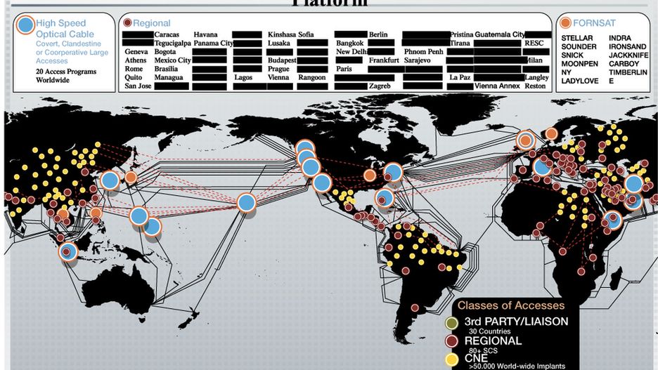 Wśród sieci teleinformatycznych wziętych na celownik znajduje się na pewno belgijski operator stacjonarny i komórkowy Belgacom, który wykrył w swojej sieci podobny atak przeprowadzony akurat przez GCHQ. Celem ataku było oczywiście zdobycie informacji na temat połączeń belgijskich abonentów. Tamten atak przeprowadzony był co prawda przez agencję brytyjską, ale mapa przedrukowana przez gazetę wskazuje, że na poziomie lokalnym NSA ma dostęp do instalacji znajdujących się między innymi w Pradze, Zagrzebiu, Berlinie czy Budapeszcie. Żółty punkt oznaczający dostęp do dużych sieci teleinformatycznych przy pomocy techniki CNE znajduje się również na terenie Polski.