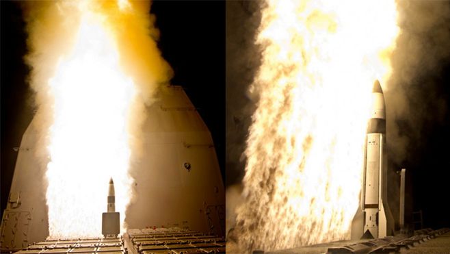 Rakieta Raytheon RIM-16. Standard Missile 3, którą uwieczniono na tych zdjęciach, jest częścią amerykańskiego systemu obrony antyrakietowej Aegis BMD. Zaprojektowano je w celu strącania rakiet balistycznych średniego i krótkiego zasięgu, jednak w 2008 roku udało się zniszczyć za pomocą zmodyfikowanej rakiety tego typu amerykańskiego satelitę szpiegowskiego, który uległ uszkodzeniu i miał spaść na powierzchnię ziemi.