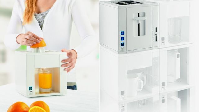 Zazwyczaj małe AGD zajmuje wiele miejsca na kuchennym blacie, poza tym poszczególne urządzenia często nie pasują do siebie stylistycznie. Inne rozwiązanie proponuje projektant Jan des Bouvrie, który we współpracy z firmą Princess stworzył modułowy zestaw kuchennych niezbędników, złożony z sześciennych urządzeń, które można dowolnie ze sobą łączyć.