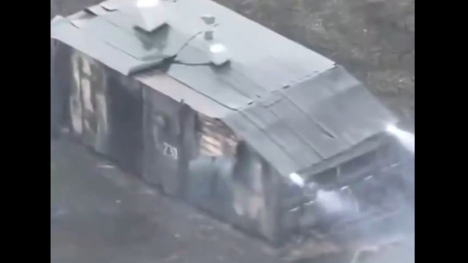 Powoduje to jednak znaczne zwiększenie rozmiaru pojazdu, co widać na poniższym nagraniu. Ten rekordowo duży egzemplarz może mieć prawdopodobnie nadbudówkę oddaloną od właściwej konstrukcji o metr, ale nie powstrzymało to żołnierzy z 30. Brygady Zmechanizowanej, którzy i tak zdołali spalić rosyjską "pancerną stodołę".