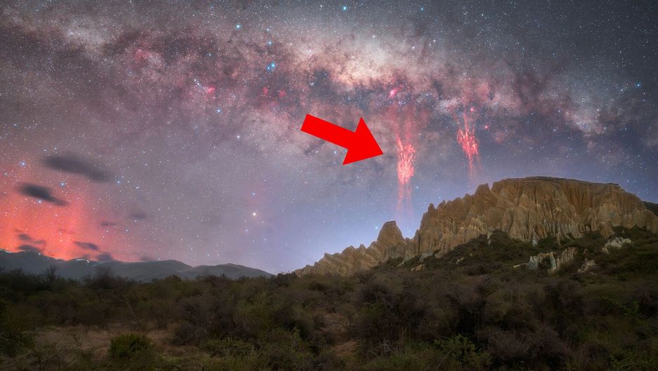 Dan Zafra sfotografował czerwone "duszki" na tle Drogi Mlecznej. Fotograf uważa, że może to być pierwszy raz, kiedy to rzadkie zjawisko zostało w tym samym kadrze, co Droga Mleczna, na półkuli południowej.