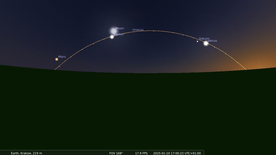 Na koniec dodajmy, że Wenus, Mars i Jowisz były świetnie widoczne nad wieczornym niebie już od początku roku, a będą dość dobrze widoczne do połowy marca. Dokładniej mówiąc, Wenus zacznie wtedy zachodzić coraz szybciej wraz ze Słońcem i na pewien czas stanie się niewidoczna. Mars i Jowisz pozostaną na nocnym niebie, choć też zachodząc już coraz wcześniej, nieco dłużej: pierwszy do czerwca, a drugi do kwietnia.