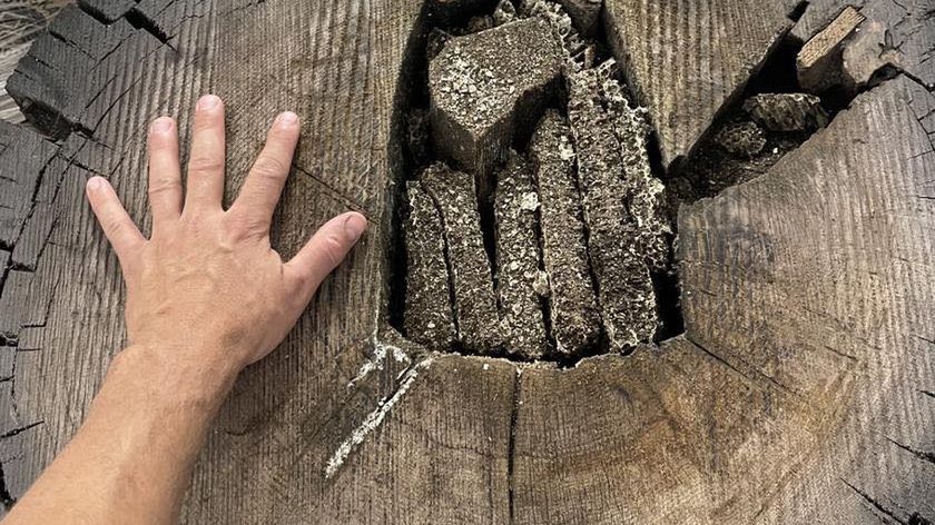 Bezcenny z punktu widzenia naukowców pień został odkryty w żwirowni. Razem z innymi dobrze zakonserwowanymi pniami trafił do pobliskiego tartaku, gdzie okazało się, że stare drzewo kryje w sobie coś jeszcze.