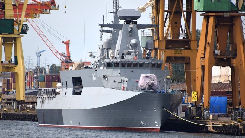 Do 2004 r. wykonano 15% prac nad kadłubem i zamówiono kluczowe elementy wyposażenia. Powodem, dla którego budowa sekcji kadłuba posuwało się tak wolno, był fakt, że SMW nie posiadała odpowiedniej technologii do wykonywania poszycia okrętu zgodnie z niemieckim projektem. Technologię spawania cienkich blach wdrożono w stoczni dopiero w 2005 r. Przyspieszenie prac nastąpiło w 2006 r., kiedy to wykonano 5 z 10 bloków kadłuba i wyposażono je w elementy wielkogabarytowe, jak silniki wysokoprężne, agregaty prądotwórcze, urządzenia sterowe, czy pędnik azymutalny. 22 grudnia 2006 r. podpisano umowę o wartości 7,5 mln euro na dostawę turbiny gazowej LM-2500 firmy Avio S.p.A.