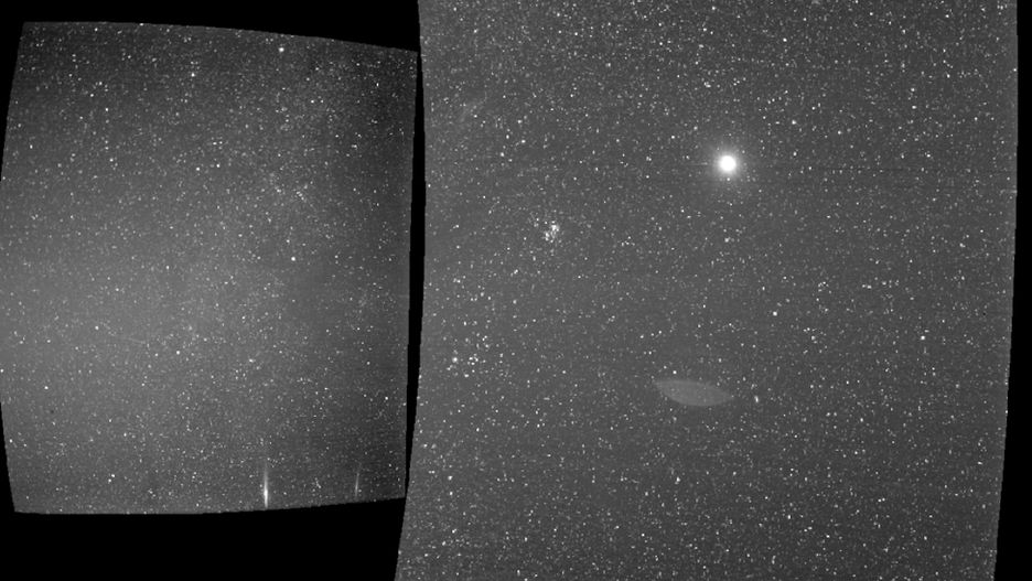 Jesteście w stanie odnaleźć Ziemię na tym zdjęciu? Jeśli myślicie, że to ten mocno świecący obiekt na samym środku prawego obrazu, to tak, macie rację. Jak widać 43 mln km to jeszcze niewystarczająca odległość, aby planeta stała się ziarenkiem piasku na obrazie.