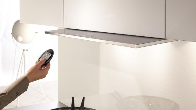 Najnowsze wyciągi Miele DA 3660 i DA 3690 wyposażone zostały seryjnie w funkcję Con@ctivity 2.0, dzięki której automatycznie się uruchomią i dopasują intensywność pracy do zadań przydzielonych płycie grzejnej. Jeśli więc uruchomimy płytę pod wyciągiem, ten, korzystając z własnego napędu, wysunie się i włączy odpowiedni poziom mocy. Jeśli nie korzystamy z systemu Con@ctivity, bez trudu uruchomimy wyciąg ręcznie lub za pomocą praktycznego pilota, którym możemy także sterować intensywnością pracy urządzenia.