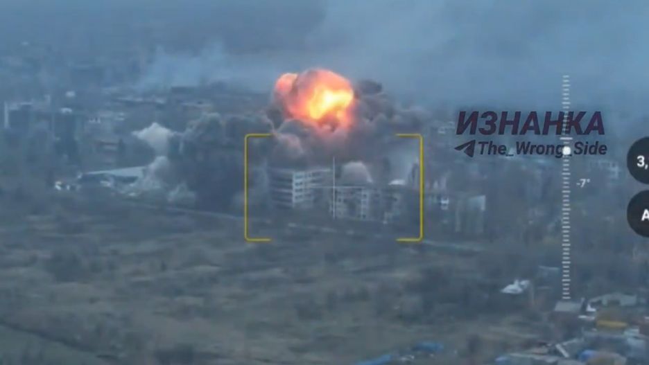 Tymczasem Rosjanie kontynuują atakowanie wykrytych pozycji obrońców za pomocą kierowanych bomb lotniczych o masie nawet 3 ton przed którymi nie ochroni żadna nawet wzmocniona betonem fortyfikacja polowa. Na poniższym nagraniu widać trafienie takiej bomby w budynek który "znikł", a okoliczne oberwały bardzo silną falą uderzeniową.