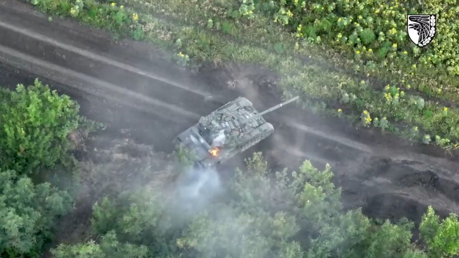Widać, że trafienie nastąpiło z prawej strony wieży i nie doszło do natychmiastowej detonacji karuzeli amunicyjnej. Czołg jeszcze chwilę po trafieniu jedzie, a następnie po zatrzymaniu ucieka z niego najprawdopodobniej jedyny jeszcze żywy rosyjski żołnierz. Jest nim kierowca, który w czołgu w przeciwieństwie do dowódcy i działonowego znajduje się trochę dalej w przodzie kadłuba.