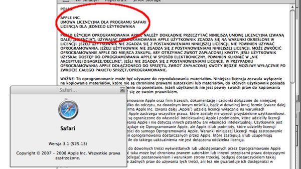Zapis licencyjny wielu czytelnikom z pewnością przypomni stare czasy, w których komputery kupowało się dla aplikacji... Cóż, najwyraźniej na Safari zasłużyli wyłącznie miłośnicy marki.
