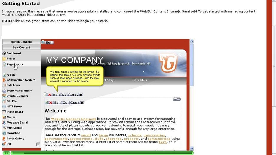 WebGUI 7.3.15 to narzędzie do budowania serwisów internetowych, przeznaczone dla małych firm i korporacji, które nie mogą sobie pozwolić na zatrudnianie webmastera. Jest to w zasadzie systemem typu CMS ( system zarządzania treścią ) o budowie modułowej. Dzięki WebGUI można tworzyć sklepy internetowe, fora dyskusyjne ( możliwości zbliżone do tych w phpBB i FUD ), galerie zdjęć, blogi i wiele innych. Dział FAQ, kalendarz z możliwością dodawania notatek lub księga gości to tylko niektóre z dostępnych struktur. Co więcej, doskonale zaprojektowany interfejs i system tworzenia serwisu "krok po kroku" sprawia, że WebGUI może używać nawet osoba niedoświadczona.
