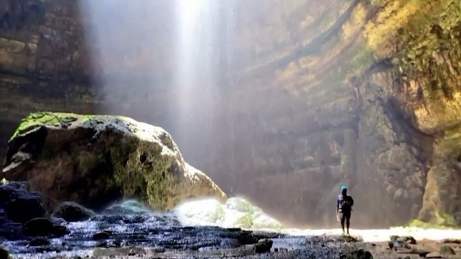 Grotołazi wylądowali na nierównym podłożu z wysokimi stalagmitami, częściowo sięgającymi ok. 9 m. Z góry wpadało światło, dzięki czemu dostrzegli m.in. zielonkawe "perły jaskiniowe" (okrągłe obiekty przypominające skały, powstałe w wyniku nagromadzenia minerałów) oraz wodospady spadające z wysokości ok. 45 m.