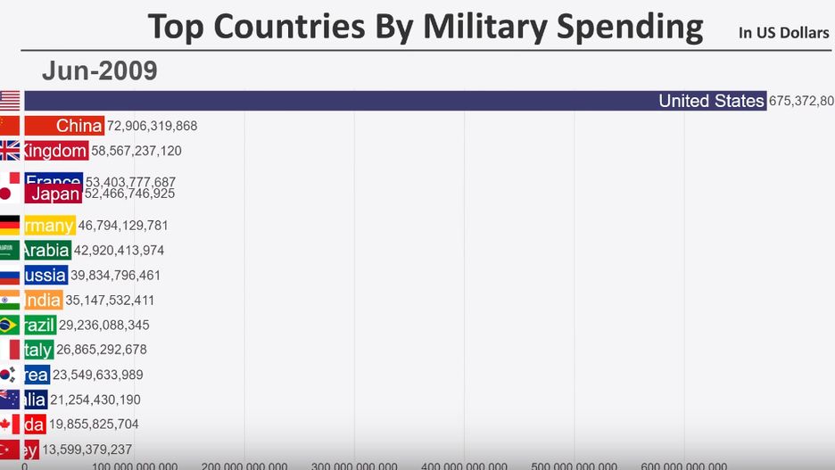Od czasu do czasu na youtube'owym profilu RankingTheWorld pojawiają się ruchome wykresy, przedstawiające bardzo interesujące dane z ostatnich kilku lub kilkudziesięciu lat. Tym razem trafiło na wydatki wojskowe, i uwierzcie, nie wszyscy mogliście zdawać sobie sprawę z tego, o jakich liczbach tu mowa.