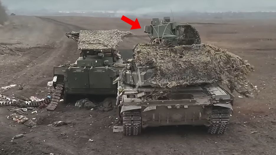 Na nic zdały się przywiązane linami do czołgu zestawy walki elektronicznej mające chronić maszynę przed bezzałogowcami. Żołnierze z 12. BSP "Azow" i 95. Brygady Powietrznodesantowej pokonali całą kolumnę Rosjan, którzy z uwagi na brak miejsca do ukrycia się i odparcia ataku, byli zmuszeni porzucić cały swój sprzęt.