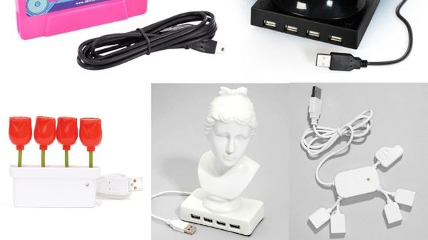 Rozdzielacze, czyli inaczej huby USB, to gadżet, który występuje w niezliczonej wręcz ilości wzorów. Wybraliśmy kilka z nich. Nakręcany chodzący robot - dla miłośników technologii, takich jak wy. Hub w kształcie klocka Lego - dla wiecznych dzieci, takich jak my. Hełm Dartha Vadera - dla fanów Star Wars. A może rząd tulipanów dla pań, lub klasyczne marmurowe popiersie dla miłośników sztuki?