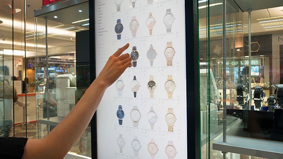 Fastfoody mają swoje kioski do zamawiania posiłków, a e-obuwie udostępnia maszyny mierzące rozmiar stopy i zamawiania butów online. Do trendu łączenia zakupów w sklepie z zakupami online przyłączyły się butiki SWISS, w których można kupić zegarki.