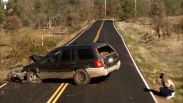 W usłudze Google można znaleźć wiele przykładów ludzkich dramatów. Tutaj widzimy sytuację krótko po wypadku - służby ratunkowe nie zdążyły jeszcze zabrać nieboszczyka.